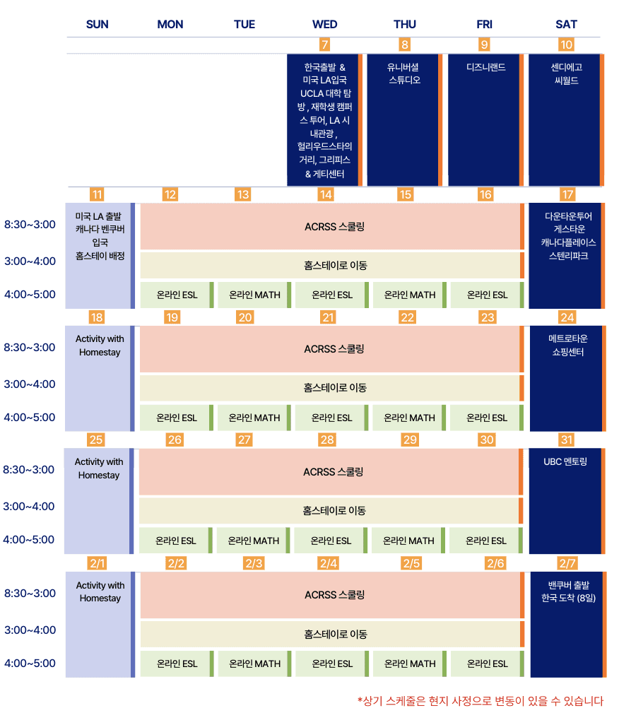 캠프기간(ACRSS) | 2026년 1월 7일~2026년 2월 7일(2월 8일 한국 도착) |