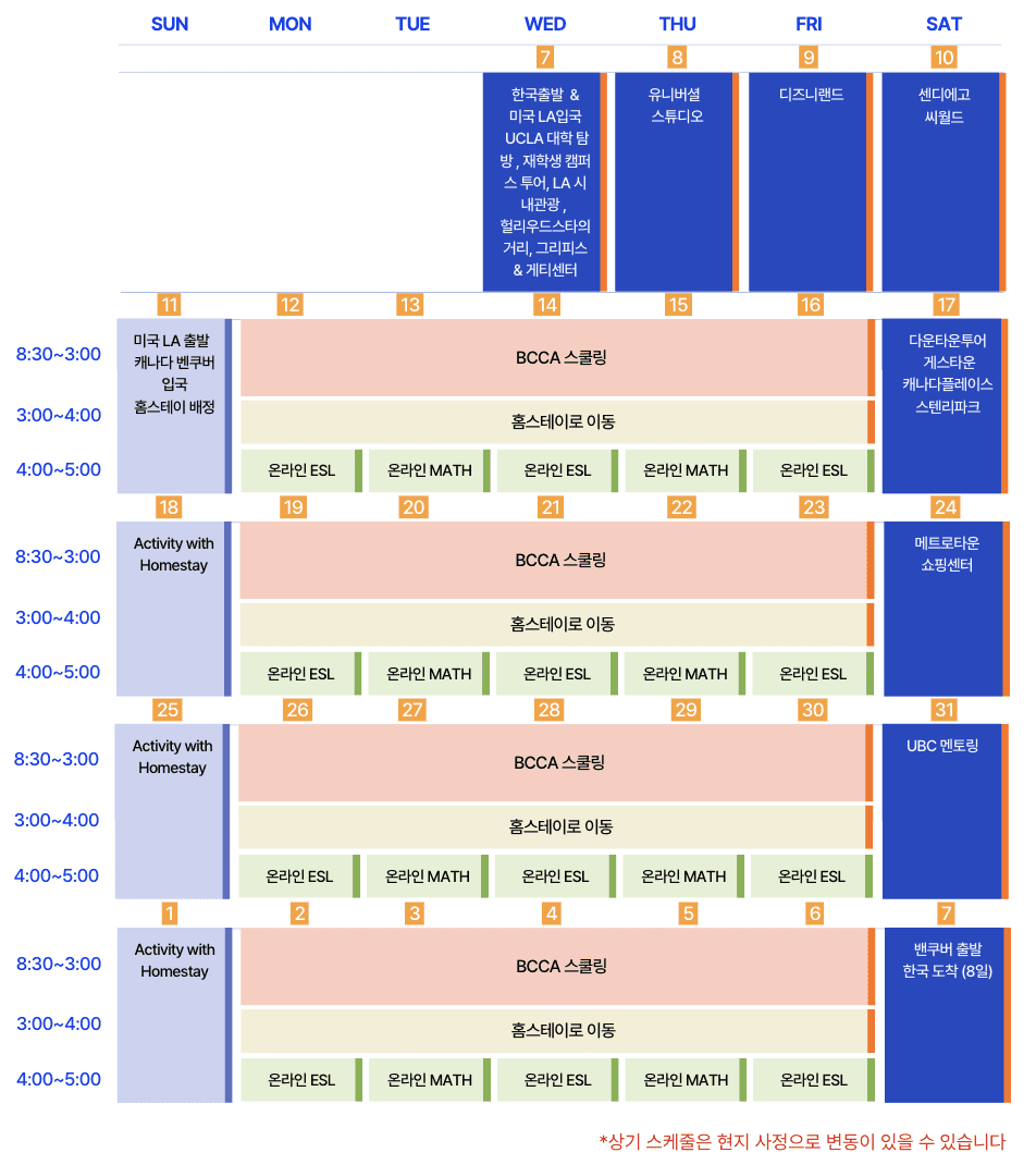 캠프기간(BCCA) | 2026년 1월 7일~2026년 2월 7일(2월 8일 한국 도착) |